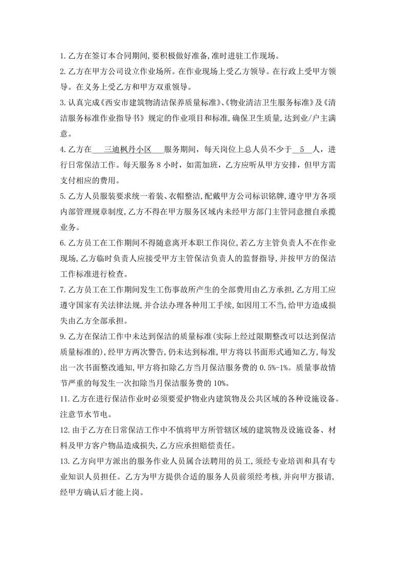 本作品内容为 合同协议_小区保洁服务合同合同协议word模板,请使用 word软件 打开,作品中的文字与图均可以修改和编辑,图片更改请在作品中右键图片并更换,文字修改请直接点击文字进行修改,也可以新增和删除作品中的内容。