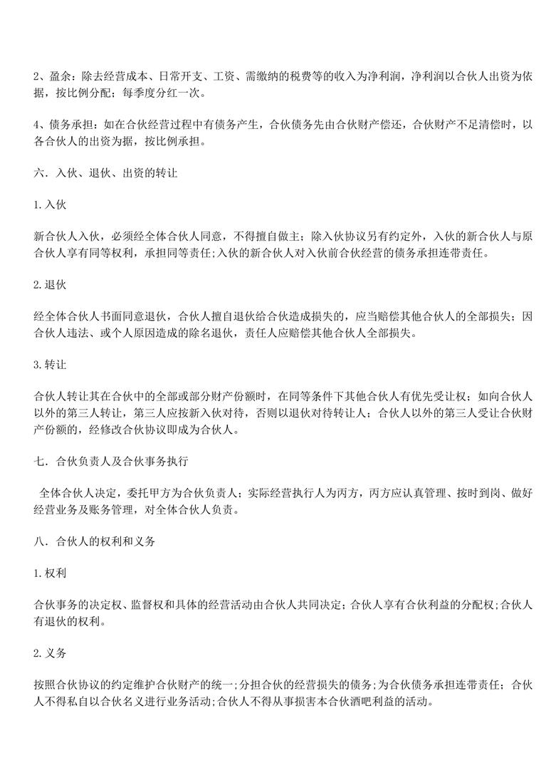 合同协议_小酒吧合伙协议合同协议word模板是二三办公网精美打造的合同协议Word通用模板,可以满足您在制作合同协议Word文档时的各种需求,二三办公网是专注生产高质量Word模板的网站,您不但可以下载合同协议_小酒吧合伙协议合同协议word模板,更有大量的不同场景,不同风格的合同协议Word模板可供下载使用。