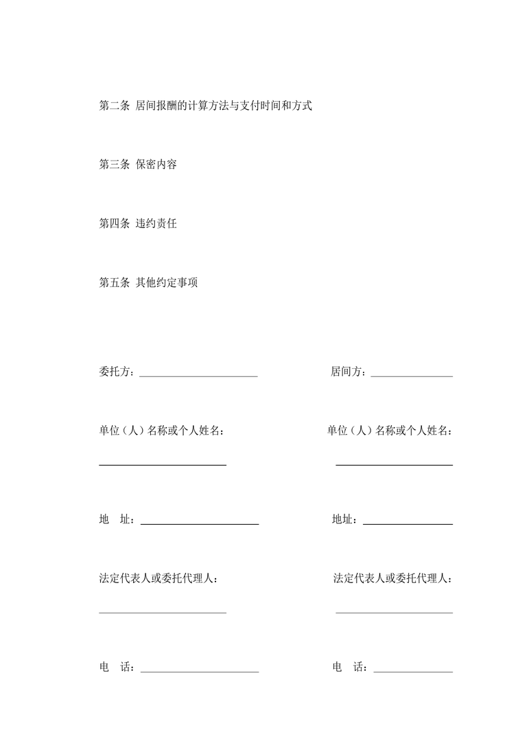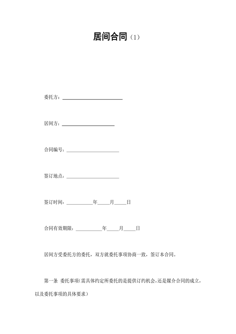 合同协议_居间合同(1)合同协议word模板是二三办公网精美打造的合同协议Word通用模板,可以满足您在制作合同协议Word文档时的各种需求,二三办公网是专注生产高质量Word模板的网站,您不但可以下载合同协议_居间合同(1)合同协议word模板,更有大量的不同场景,不同风格的合同协议Word模板可供下载使用。