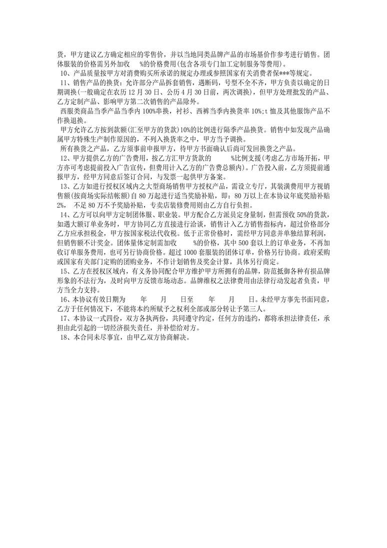 合同协议_服装批发代理合同合同协议word模板是二三办公网精美打造的合同协议Word通用模板,可以满足您在制作合同协议Word文档时的各种需求,二三办公网是专注生产高质量Word模板的网站,您不但可以下载合同协议_服装批发代理合同合同协议word模板,更有大量的不同场景,不同风格的合同协议Word模板可供下载使用。