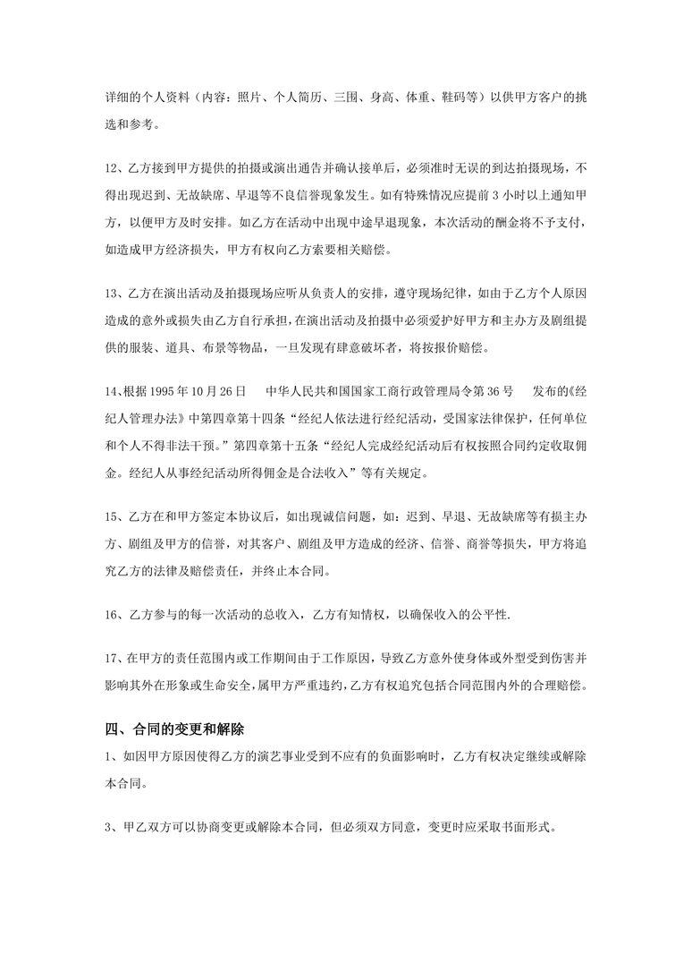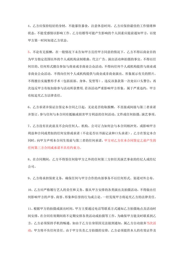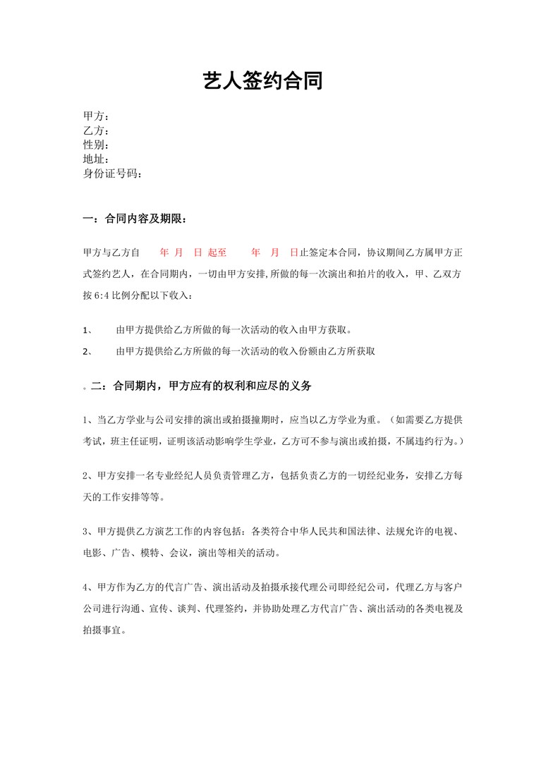 本作品内容为 合同协议_艺人签约合同范本合同协议word模板,请使用 word软件 打开,作品中的文字与图均可以修改和编辑,图片更改请在作品中右键图片并更换,文字修改请直接点击文字进行修改,也可以新增和删除作品中的内容。